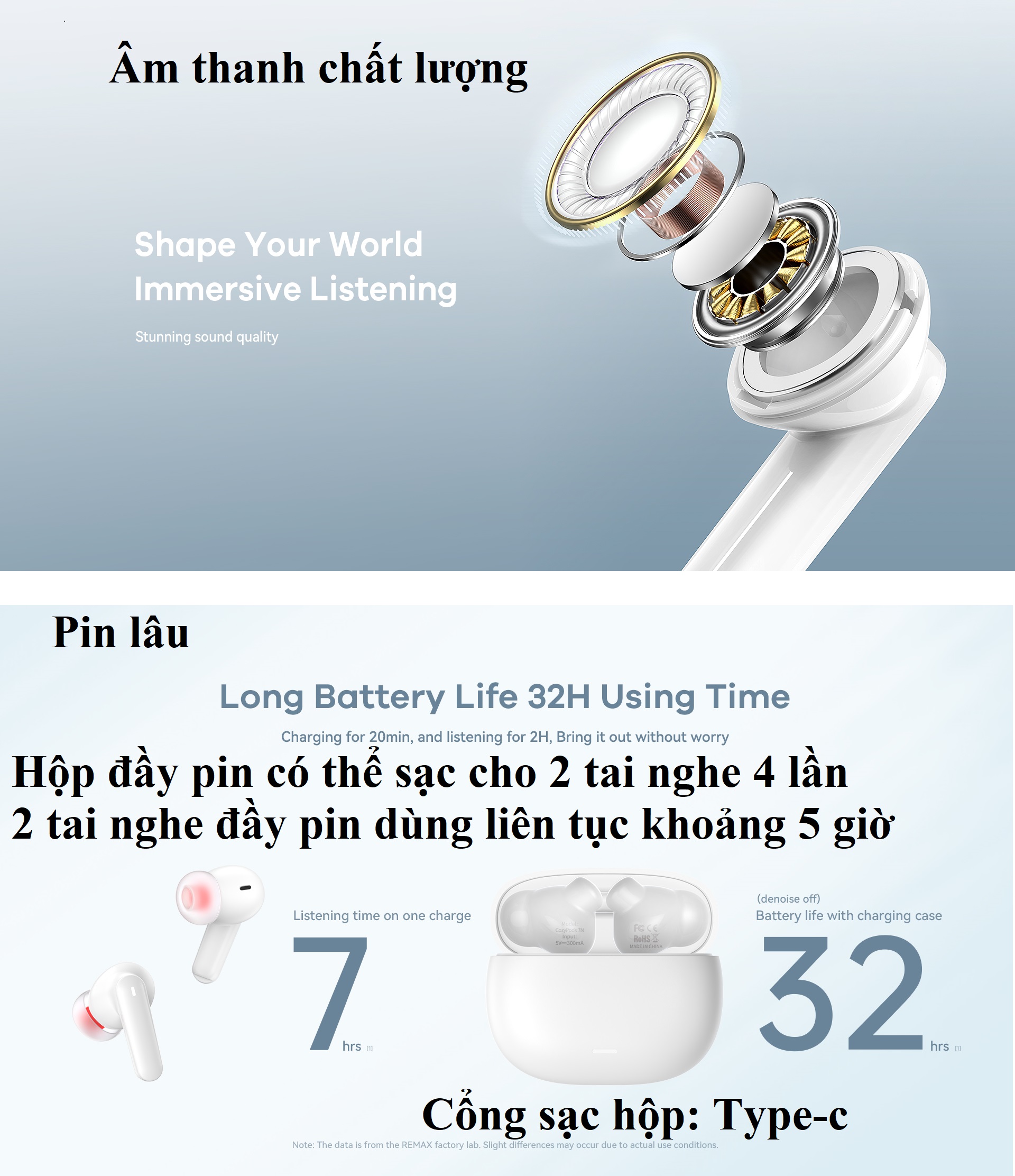 ✨Tai nghe không dây bluetooth V5.3 công nghệ khử ồn kép Remax CozyPods W7N _ Hàng chính hãng