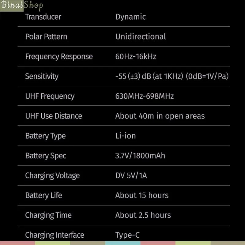- Sử dụng sóng không dây UHF công suất thấp cho khả năng chống nhiễu mạnh mẽ với khoảng cách truyền dẫn hơn 40m.