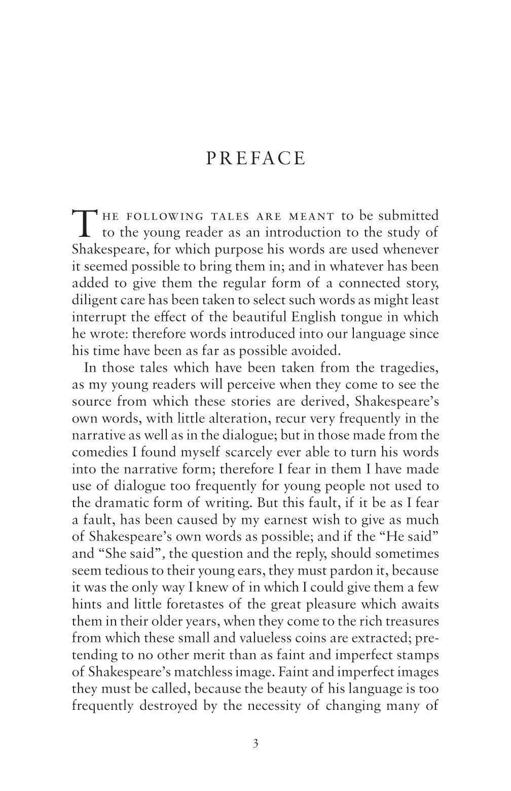In 1807, Charles Lamb and his sister Mary wrote a collection of stories retelling twenty of Shakespeare's plays for children. While making sure that the pieces were accessible for a younger audience, they took care to stay faithful to the language and vocabulary of the Bard as much as possible.