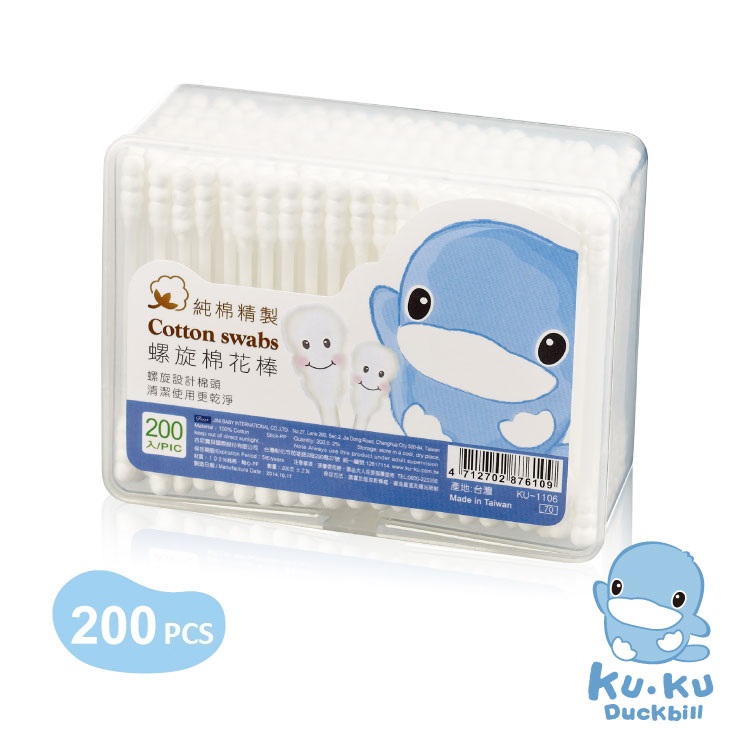 Tăm Bông Vệ Sinh Cho Bé KUKU KU1106 - 200 Cái làm bằng chất liệu cotton cao cấp, mềm mại, thấm hút nhanh chóng giúp vệ sinh tai, rốn... hiệu quả, không gây tổn thương bé.