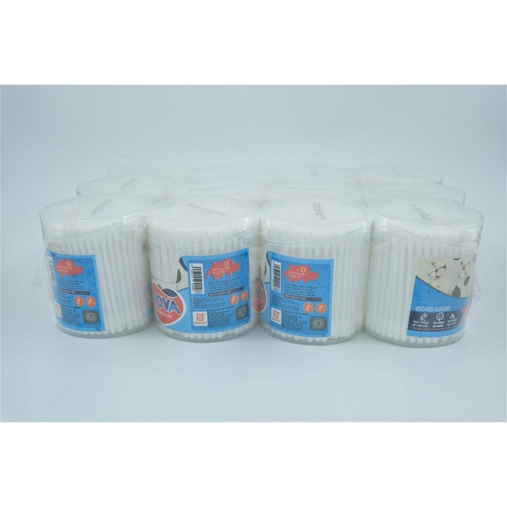 Tăm bông NOVA Baby cho trẻ sơ sinh – đầu bông mềm mịn, không rụng sợi, thân que dẻo, an toàn cho bé. Túi zip tiện lợi, mỗi túi 100 que, combo 12 túi tiết