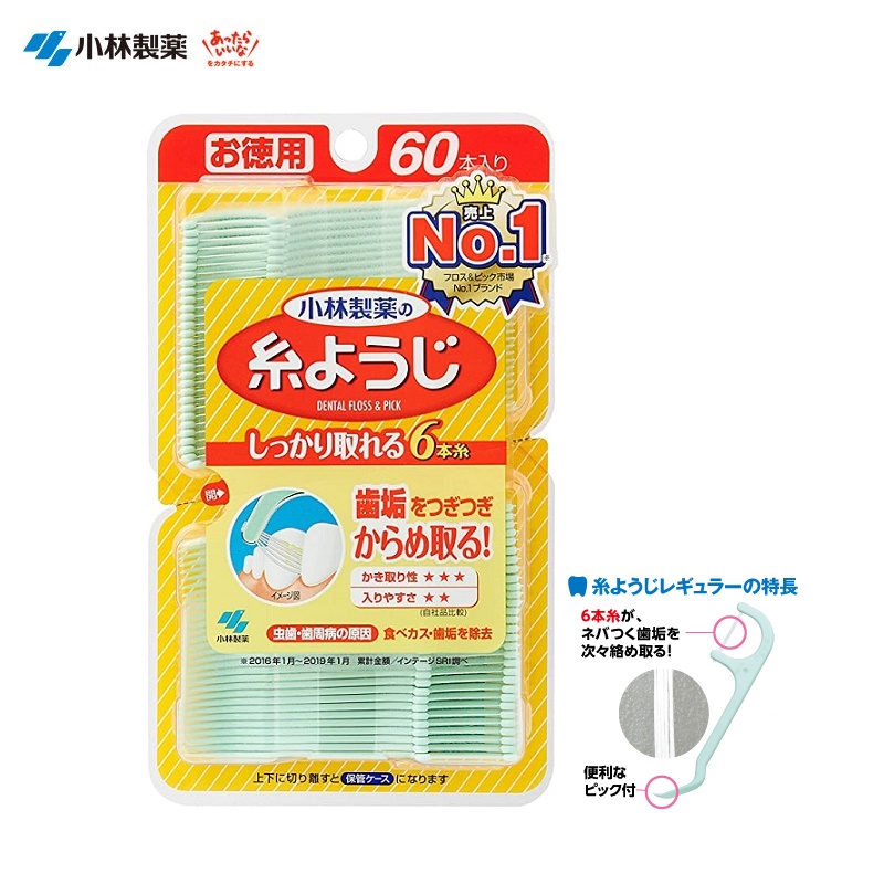 Set 60 chiếc tăm chỉ nha khoa Kobayashi, giúp lấy đi những thức ăn thừa lưu bám ở kẽ răng, chân nướu - nơi mà bàn chải đánh răng không thể chạm đến được -