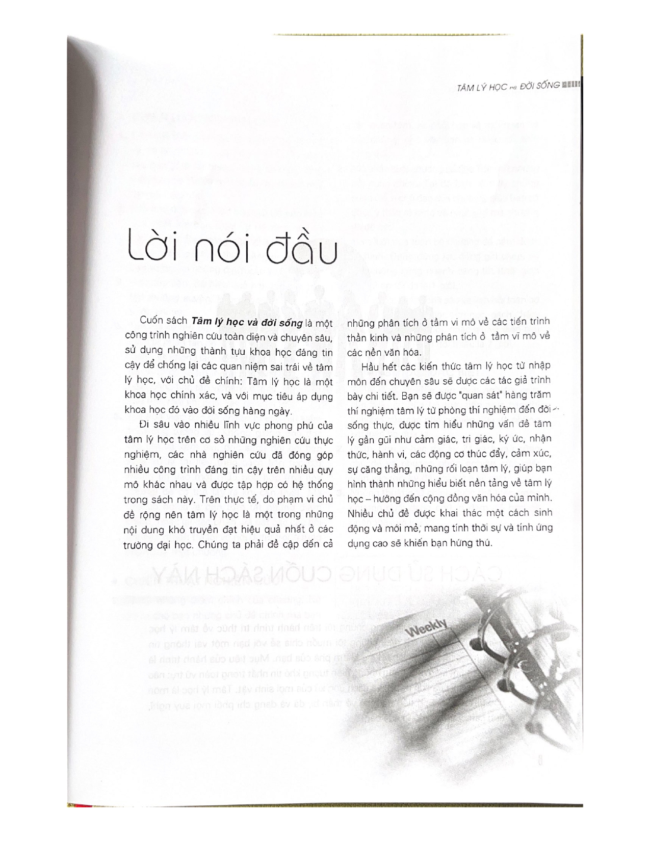 Tâm lý học và đời sống là cuốn sách đồ sộ, đề cập và đi sâu khai thác rất nhiều chủ đề về tâm lý con người dựa trên kết quả của hàng trăm công trình thực nghiệm do các nhà nghiên cứu tâm lý thực hiện. Đó là những nghiên cứu đáng tin cậy được tập hợp từ nhiều nơi trên khắp thế giới, ở nhiều thời điểm lịch sử cho đến thế kỷ 21, trên nhiều quy mô khác nhau. Các chủ đề tâm lý con người, từ nhận thức đến hành vi chủ quan cũng như tác động của hoàn cảnh, đều được phân tích đầy đủ trong cuốn sách này. Đây sẽ là một tài liệu tổng quát và chuyên sâu giúp bạn nghiên cứu các vấn đề tâm lý học trong đời sống hàng ngày một cách có hệ thống và dễ tiếp thu nhất.
