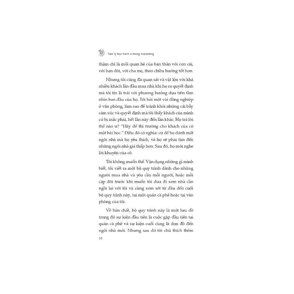 Nếu bạn đang tìm kiếm những đòn bẩy để giúp công ty của mình phát triển, chiến thắng và thoát khỏi câu chuyện cũ đầy mệt mỏi về những nhân viên và khách hàng không muốn tương tác, thì Tâm lý học hành vi trong marketing là dành cho bạn. Nó sẽ khởi đầu một mối tình trọn đời với khách hàng của bạn - một mối tình dẫn đến tăng trưởng doanh thu, đổi mới sản phẩm và sự gắn kết của nhân viên. Cuốn sách mang đến các câu chuyện và nghiên cứu trường hợp từ mọi ngành nghề, làm sáng tỏ cách suy nghĩ về khách hàng, sản phẩm và dịch vụ, hoạt động tiếp thị, đối thủ cạnh tranh và thậm chí cả văn hóa của họ.