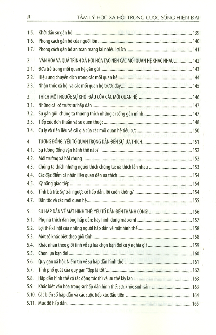 Cuốn sách gồm 11 chương: Chương 1: chuyên ngành tâm lý học xã hội Chương 2: Cái tôi nhìn từ góc độ văn hóa và xã hội Chương 3: Sự hấp dẫn và các mối