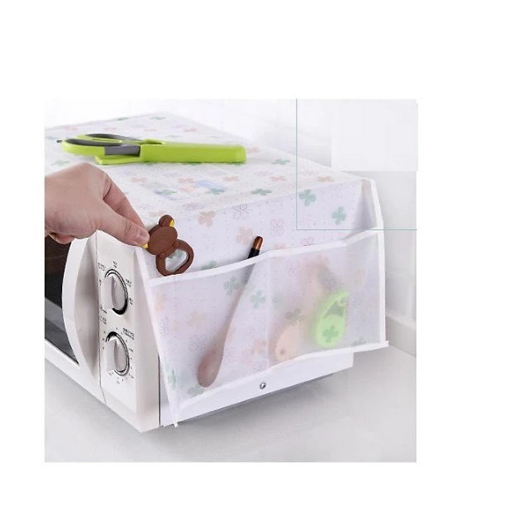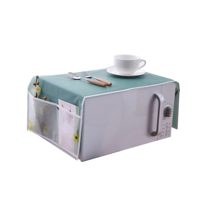 Áo trùm lò vi sóng. Áo phủ lò vi sóng bao trùm được toàn bộ lò vi sóng, phía bên hông còn có ngăn để đựng các dụng cụ nhà bếp gọn gàng, giúp bạn
