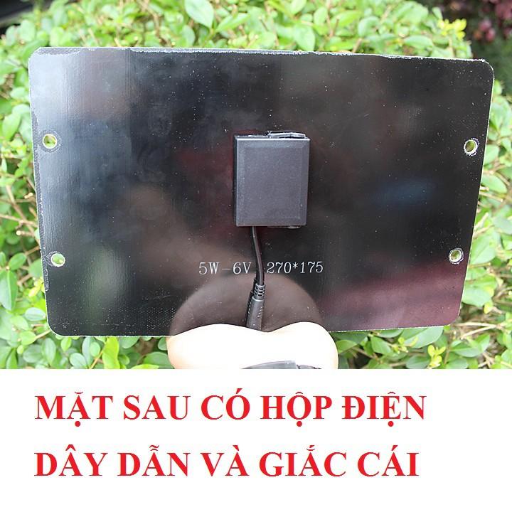 TẤM PIN MONO NĂNG LƯỢNG MẶT TRỜI 6v-5w Không mất tiền điện hàng tháng. Tổng chi phí đầu tư = 2 năm tiền điện. Hiệu quả kinh tế, cùng chung tay bảo vệ môi trường. SÁNG HƠN - BỀN HƠN - TIỆN HƠN - TIẾT KIỆM HƠN Thông Số Kỹ Thuật TẤM PIN NĂNG LƯỢNG MẶT TRỜI 5W Tấm Panel công suất 5w giúp sạc đầy pin nhanh chóng. Kích thước tấm pin của chúng tôi luôn lớn hơn các sản phẩm khác trên thị trường có cùng công suất và giá. Đặc biệt tấm pin Mono sẽ cho hiệu suất cao Tấm pin có thể đấu nối với hệ thống tích điện trong nhà với dây và giắc kèm theo: Hoặc dùng trực tiếp với thiết bị điện Công suất thật: Hàng mới 100% nhưng thanh lý với giá rất rẻ và số lượng có hạn Ngoài ra chúng tôi có nhiều sản phẩm công suất khác nhau để quý khách lựa chọn: 3w, 6w, 10w, 15w, 20w, 30w Sản phẩm mới 100% bảo hành 1 tháng.