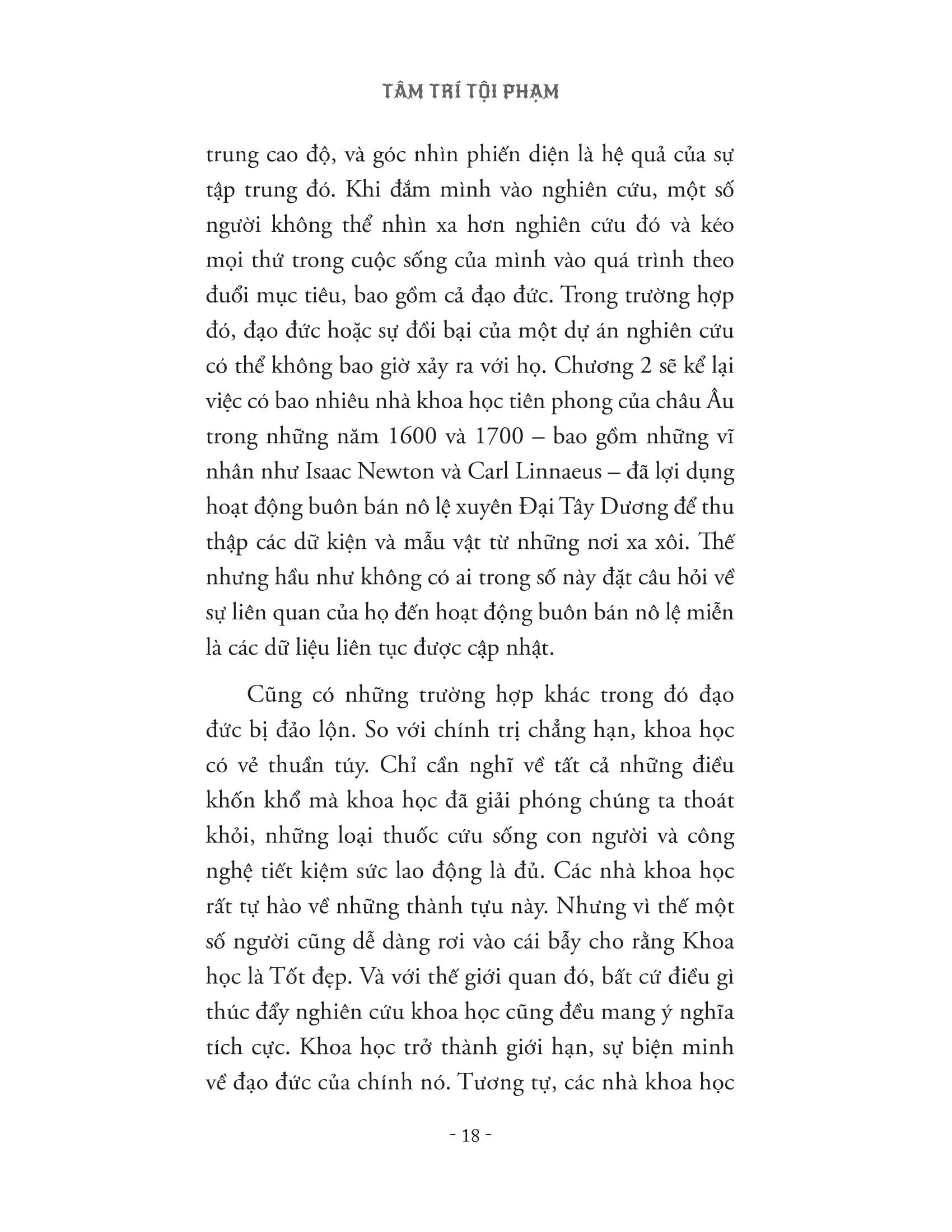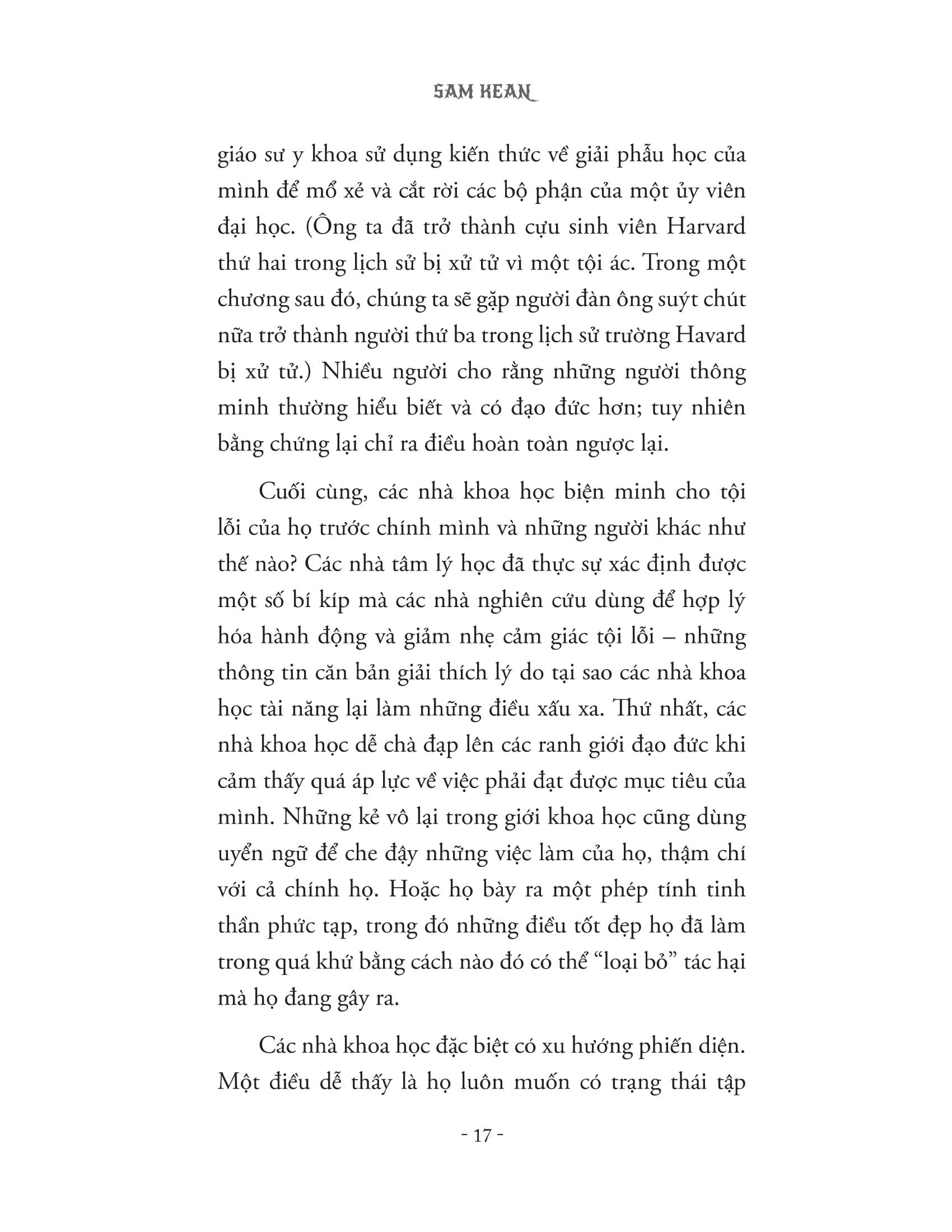 Cuốn sách tiết lộ nguồn gốc của phần lớn khoa học hiện đại về hoạt động buôn bán nô lệ xuyên Đại Tây Dương vào những năm 1700, cũng như vai trò của Thomas Edison với sự ra đời của ghế điện và logic sai lệch của những điệp viên đã thâm nhập vào Dự án Manhattan. Nhưng những tội lỗi của khoa học không phải tất cả đều được chôn vùi an toàn trong quá khứ. Kean nhắc nhở chúng ta rằng nhiều trong số đó vẫn còn ảnh hưởng đến chúng ta ngày nay.