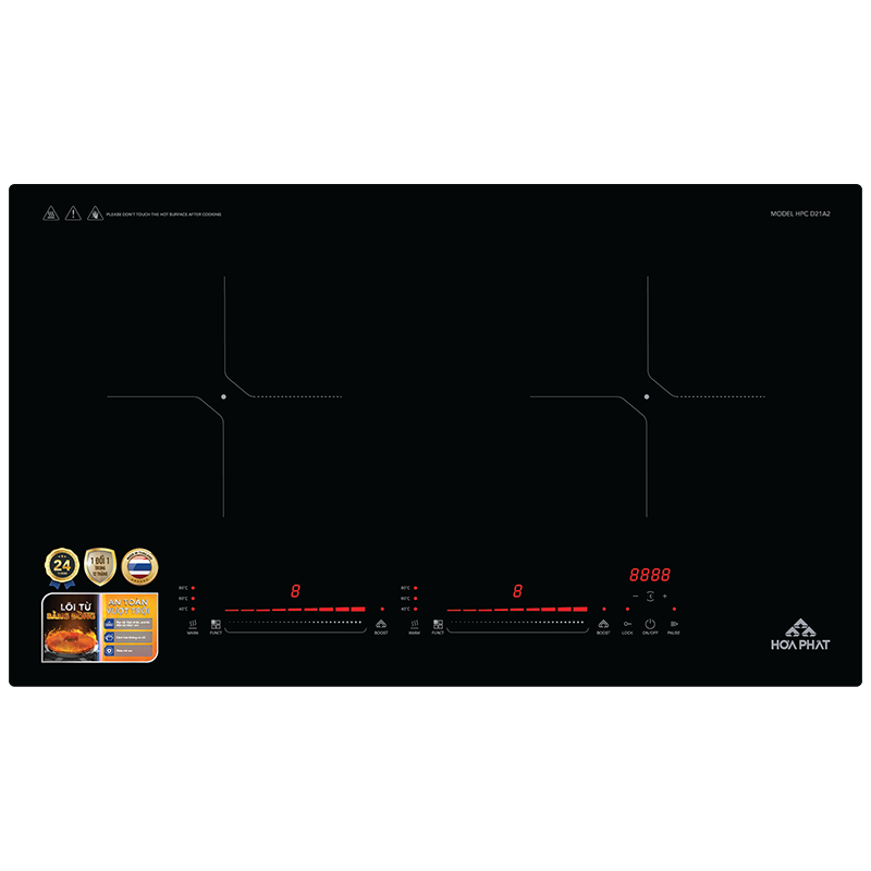 - Loại bếp: Bếp từ đôi - phù hợp với các loại nồi chảo có đáy nhiễm từ, đun nấu cực nhanh và an toàn cho người sử dụng, không trực tiếp tỏa ra nhiệt