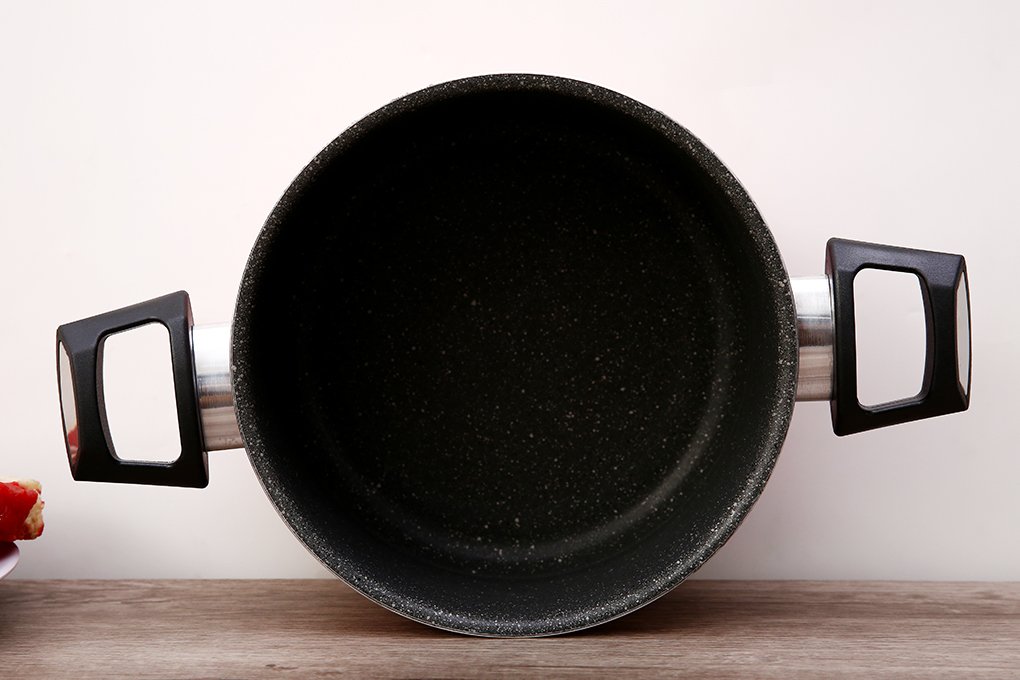 Bề mặt nồi được xử lý bằng chất liệu chống oxy hóa sau đó được phủ lớp chống dính PTFE vân đá cao cấp sang trọng, chịu được nhiệt độ lên tới 450 độ C, không phản ứng với thức ăn, khả năng chống dính tốt.