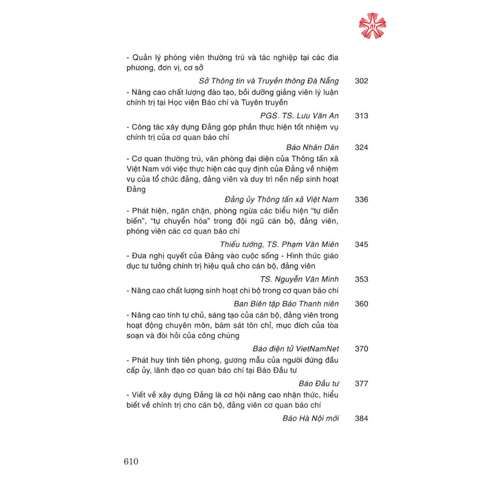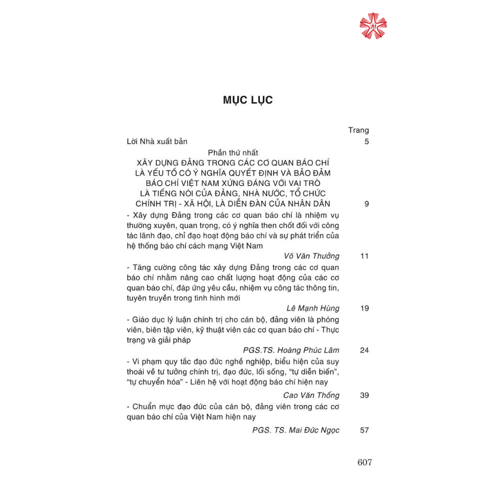 Cuốn sách tập hợp các bài tham luận trong Hội thảo khoa học “Tăng cường công tác xây dựng Đảng trong các cơ quan báo chí”, do Ban Tuyên giáo Trung ương Đảng chủ trì,