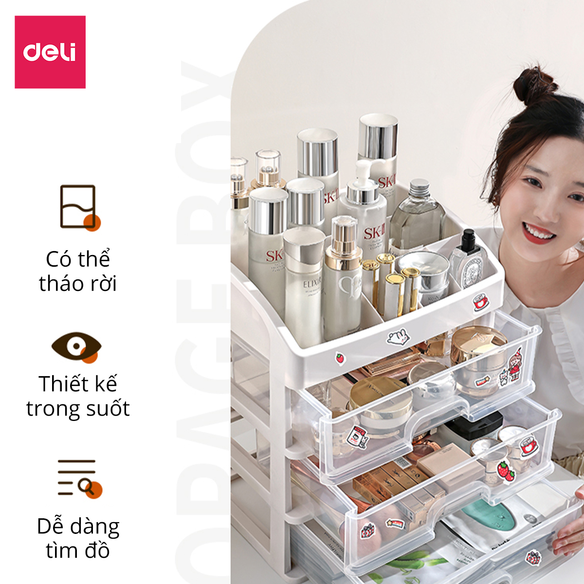 THÔNG TIN SẢN PHẨM - Hộp đựng dụng cụ trang điểm được thiết kế ấn tượng và độc đáo, giúp bạn cất giữ những món đồ trang điểm thật gọn gàng, không sợ thất lạc
