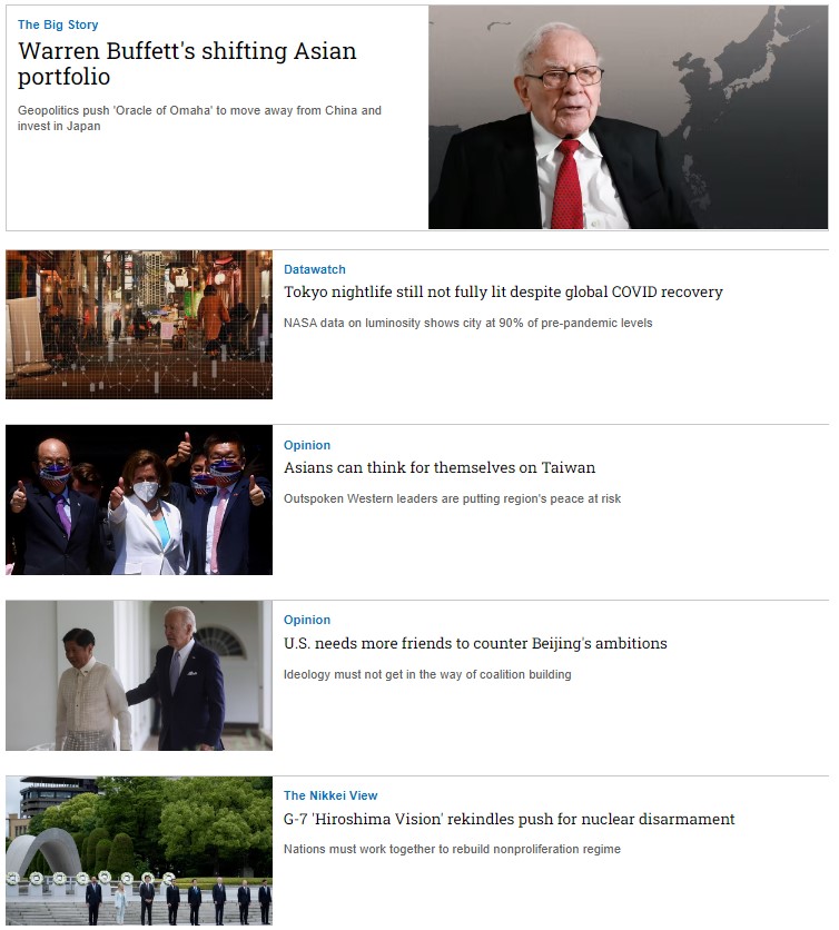 Nikkei Asia là tạp chí bằng tiếng Anh rất uy tín của Nikkei - Nhật Bản, chuyên viết về Xu hướng khu vực châu Á - Thái Bình Dương, Kinh tế, Công nghệ, Chính trị,