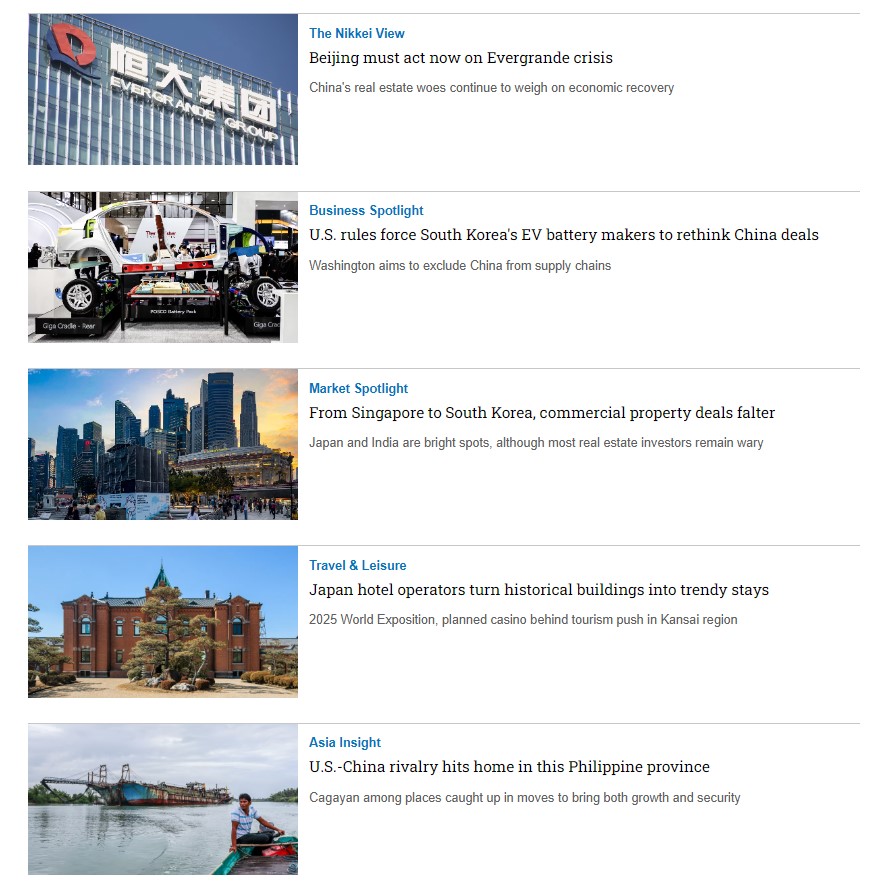 Nikkei Asia là tạp chí bằng tiếng Anh rất uy tín của Nikkei - Nhật Bản, chuyên viết về Xu hướng khu vực châu Á - Thái Bình Dương, Kinh tế, Công nghệ, Chính trị,