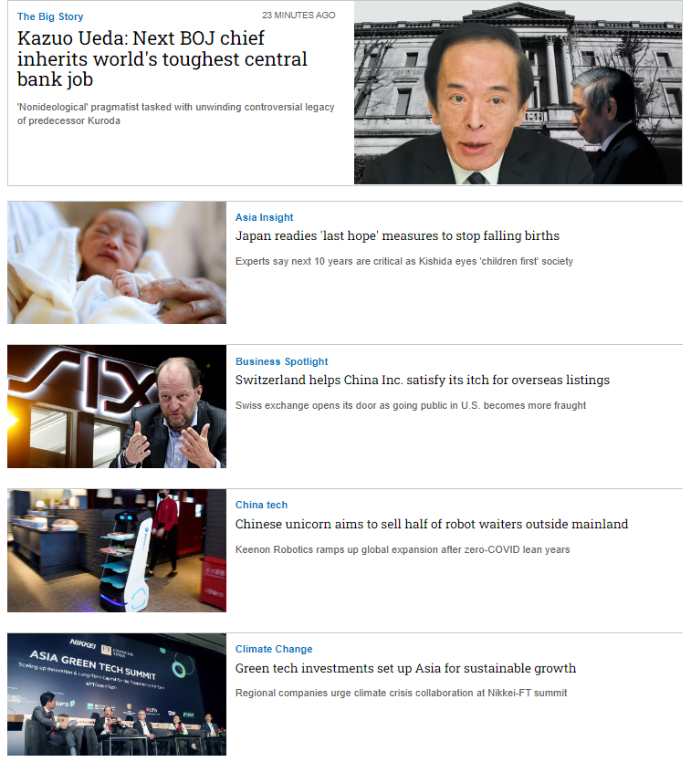 Mỗi tuần, Nikkei Asia xuất bản hơn 16,000 ấn phẩm đến tay độc giả của 30 quốc gia. Nikkei là thương hiệu báo tài chính uy tín và lớn nhất thế giới, mỗi ngày tại Nhật Bản phát hành 4 triệu bản. Tập đoàn còn sở hữu các đầu báo uy tín khác như Financial Times, Dealstreet Asia,...