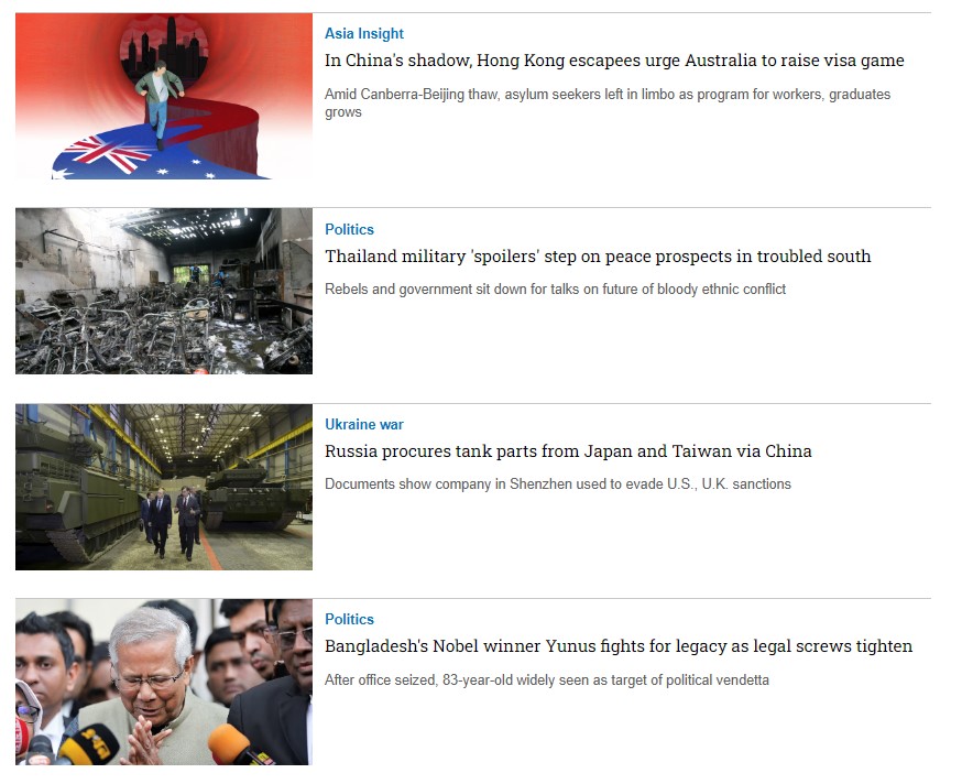 • Là thương hiệu truyền thông lớn và được kiểm duyệt nội dung hằng tuần với dạng thông tin chính thống, được thu thập từ các phóng viên uy tín trên toàn Châu Á, là nguồn trích xuất cho nhiều nhà báo tại Việt Nam.