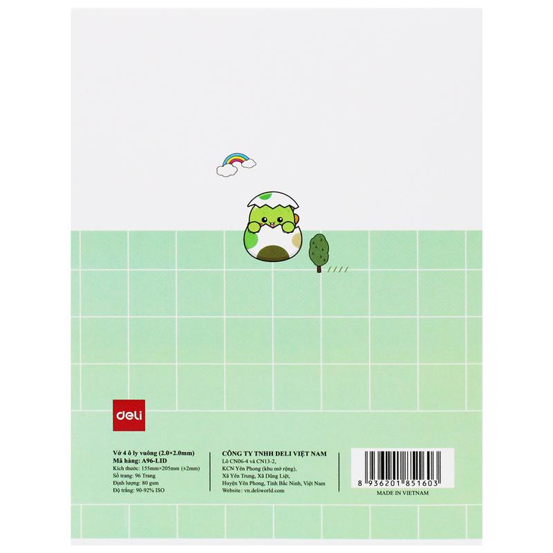 Mua tại TiktokTập Học Sinh - 4 Ô Ly Vuông - 96 Trang 80gsm - Deli CNA96-LID