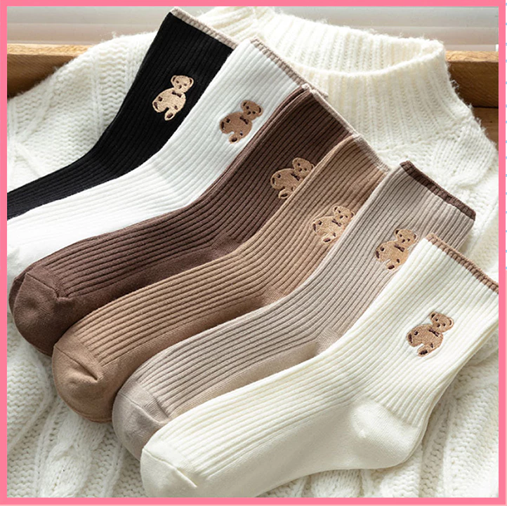 Tất Nữ Cổ Trung Thời Trang Hàn Quốc Họa Tiết Hình Gấu, Vớ Nữ Cổ Lửng Cao Cấp Êm Mềm Thoáng Khí