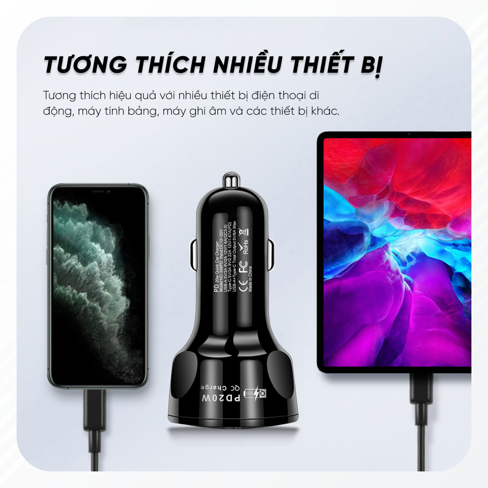 Tẩu Sạc Điện Thoại USB Type C Hỗ Trợ Sạc Nhanh 20W Nếu bạn cảm thấy bất tiện khi phải cắm sạc cùng lúc nhiều thiết bị? Tẩu sạc thông thường chỉ có 2, thậm chí cùng lắm là 3 cổng sạc. Đây sẽ là sản phẩm dành riêng cho bạn. Tẩu Sạc ô tô chia 4 cổng USB Chất liệu cao cấp chống rơi vỡ, chống cháy chuẩn an toàn cho người sử dụng. ƯU ĐIỂM SẢN PHẨM: