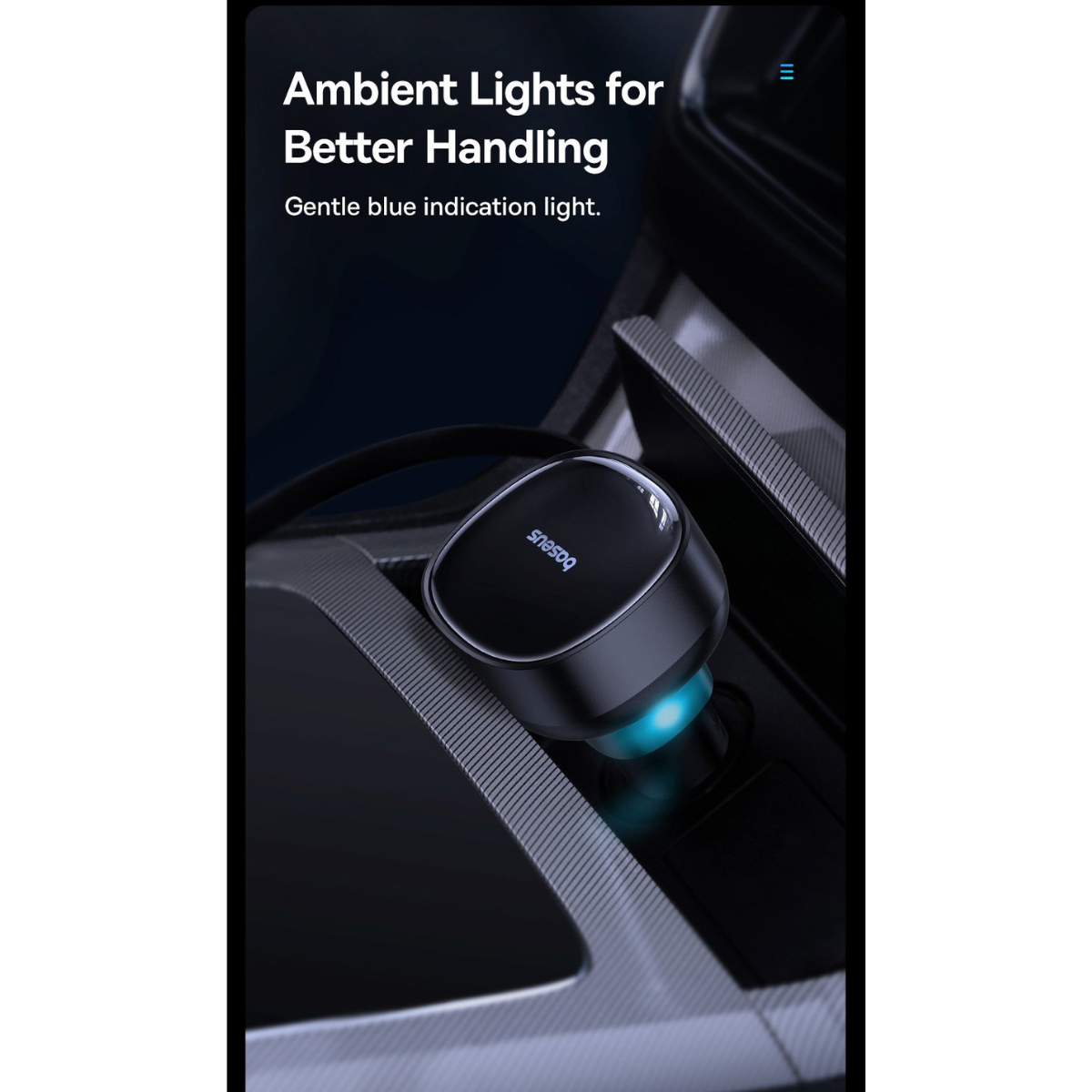 Giới thiệu Tẩu sạc dùng trên ô tô tích hợp cáp Type C và Light-ning Cable 60W Baseus Enjoyment Pro Car Charger