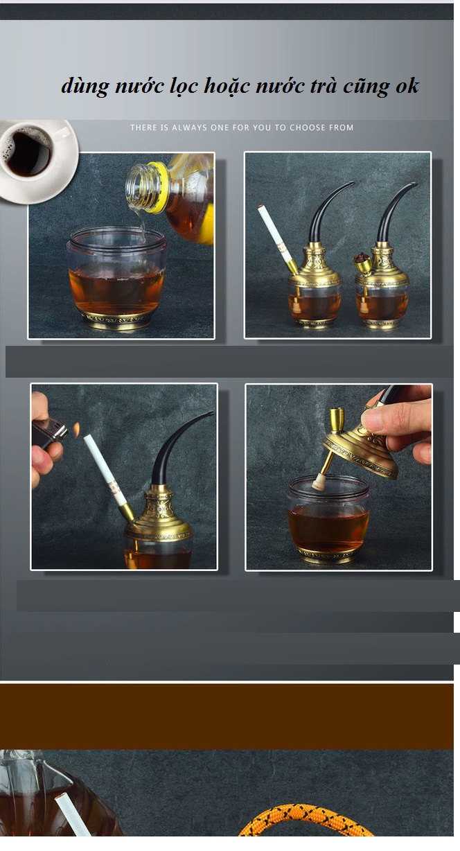 - Cách sử dụng: Đổ nước lọc vào bình 2/3 và bỏ thuốc điếu hoặc sợi vào