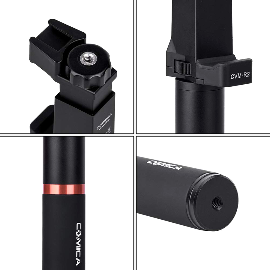 - Tay Cầm Chụp Hình cho điện thoại Comica CVM-R2 có thiết kế chắc chắn, có trọng lượng đã được tính toán để tạo sự ổn định cho khung hình khi cầm máy chỉ với