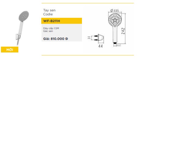 Tay dây sen WF-B211H American Standard – đã bao gồm tay dây sen, gác sen Thông số kỹ thuật - Loại sản phẩm : Tay dây sen ba chức năng - Dây sen dài 1500mm, đường kính