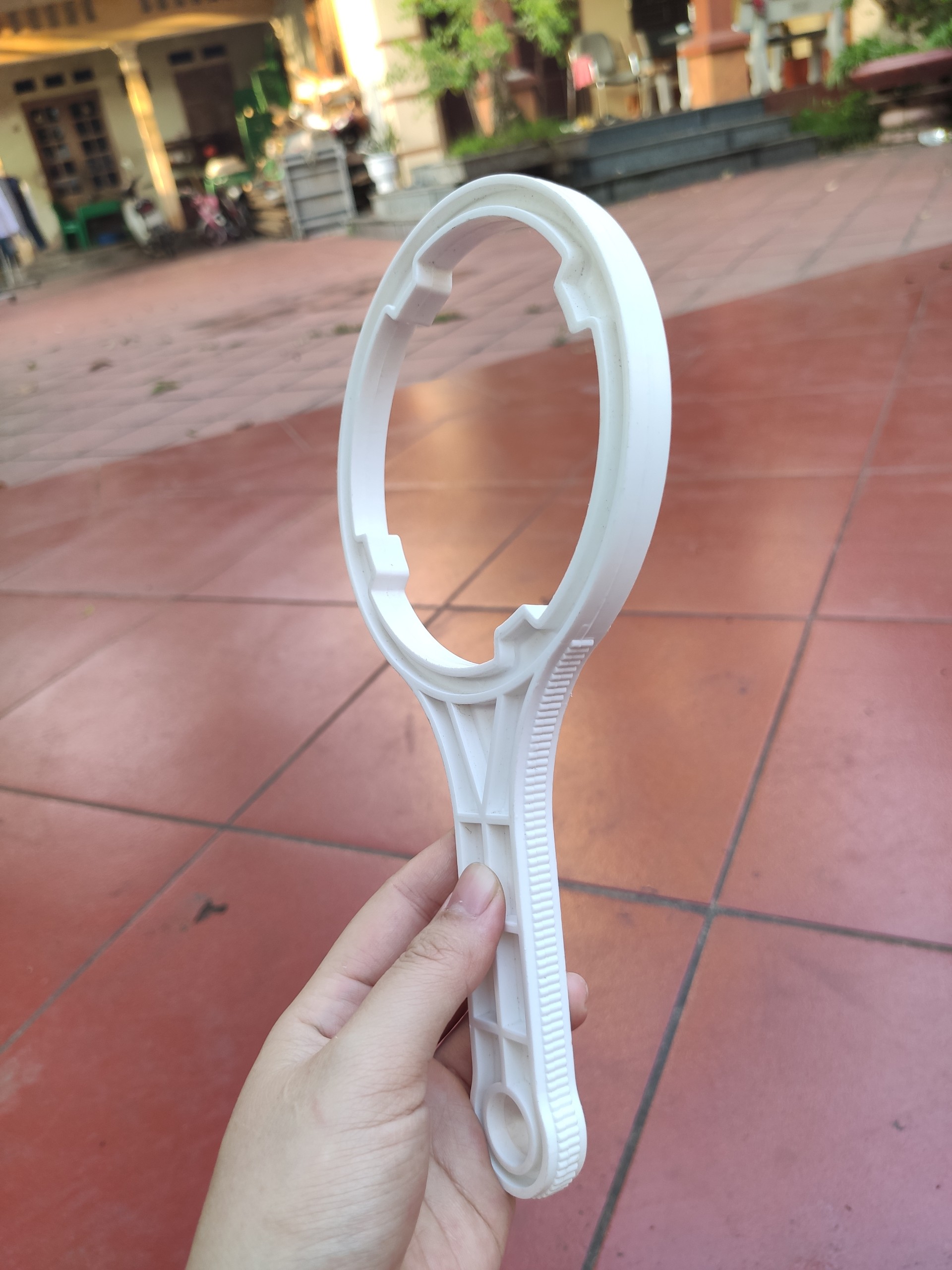Tay mở khóa dùng để mở cốc lọc nước mỗi khi phải vặn ra để thay lõi lọc trong máy lọc RO