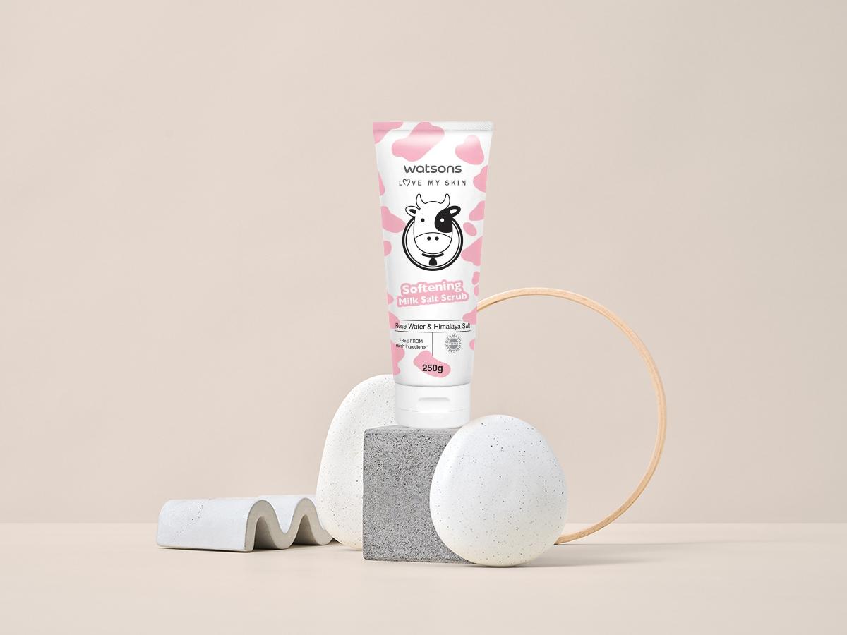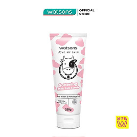 - Tẩy Tế Bào Chết Watsons Love My Skin Mềm Mượt Da Softening Milk Salt Scrub 250g chứa muối tự nhiên, dưỡng chất từ sữa thủy phân, chiết xuất lô hội (nha đam), vitamin E… giúp tẩy tế bào chết, lấy đi bụi bẩn giúp làn da bạn sạch sáng hơn.