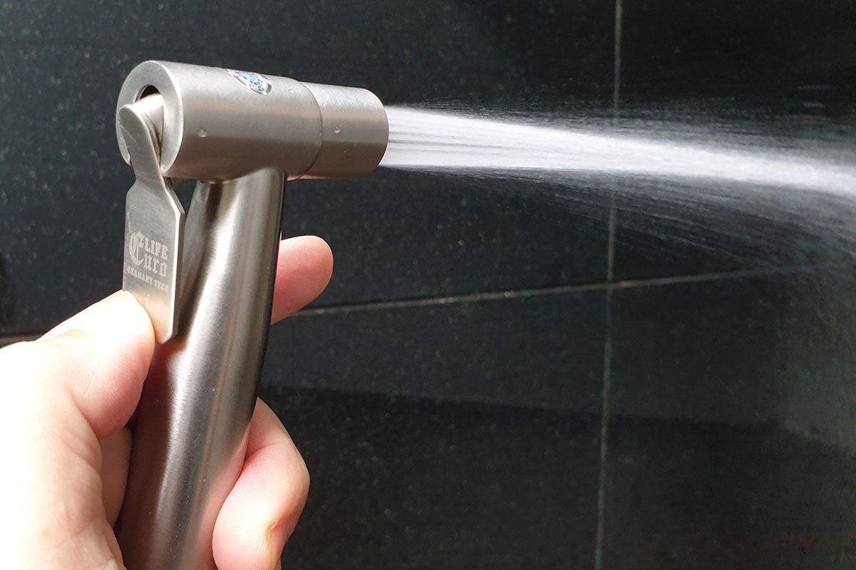 Tay xịt được sản xuất với chất liệu Inox SUS 304 không han rỉ, không dính kết vết bẩn. Vật liệu đạt tiêu chuẩn chất lượng Châu Âu, không bong tróc lớp xi mạ theo thời gian.