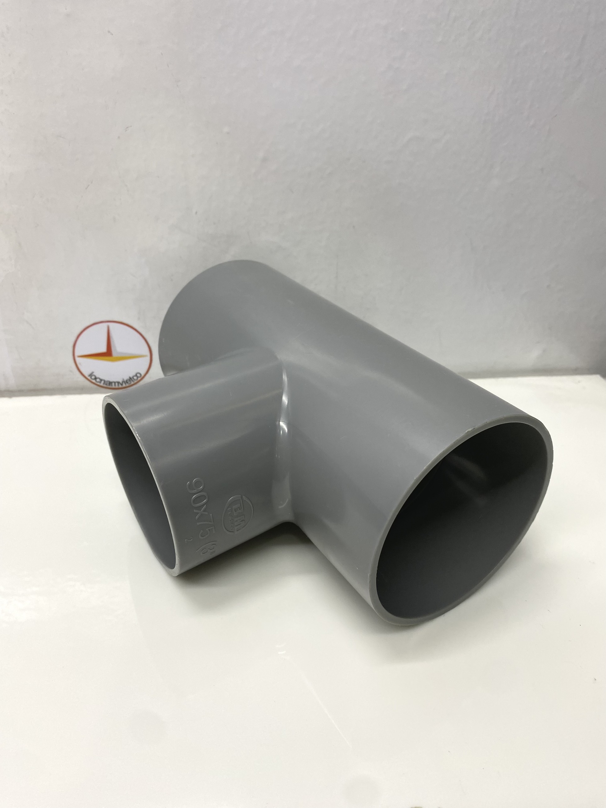 Mua tại TiktokTê giảm 90 x 75 nhựa PVC Bình Minh _ T90x75 Tê giảm hay còn gọi là tê rút (Tiếng anh Reducing Tee). Chữ tê giảm dùng chia nước từ đường ống sẵn có ra thêm một ống nhỏ hơn ống hiện tại vuông góc 90 độ của ống đang đi sẵn. Đặc Điểm: