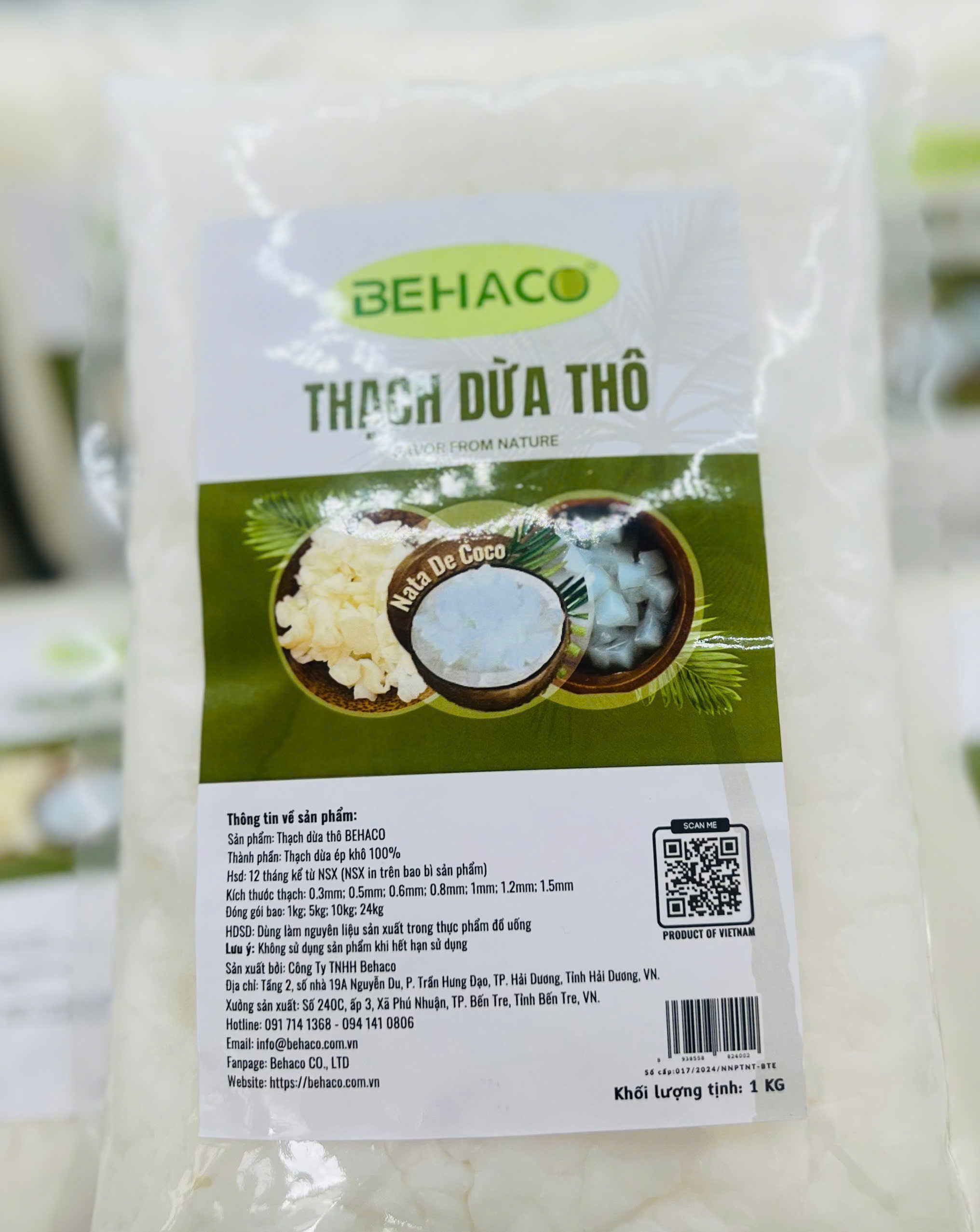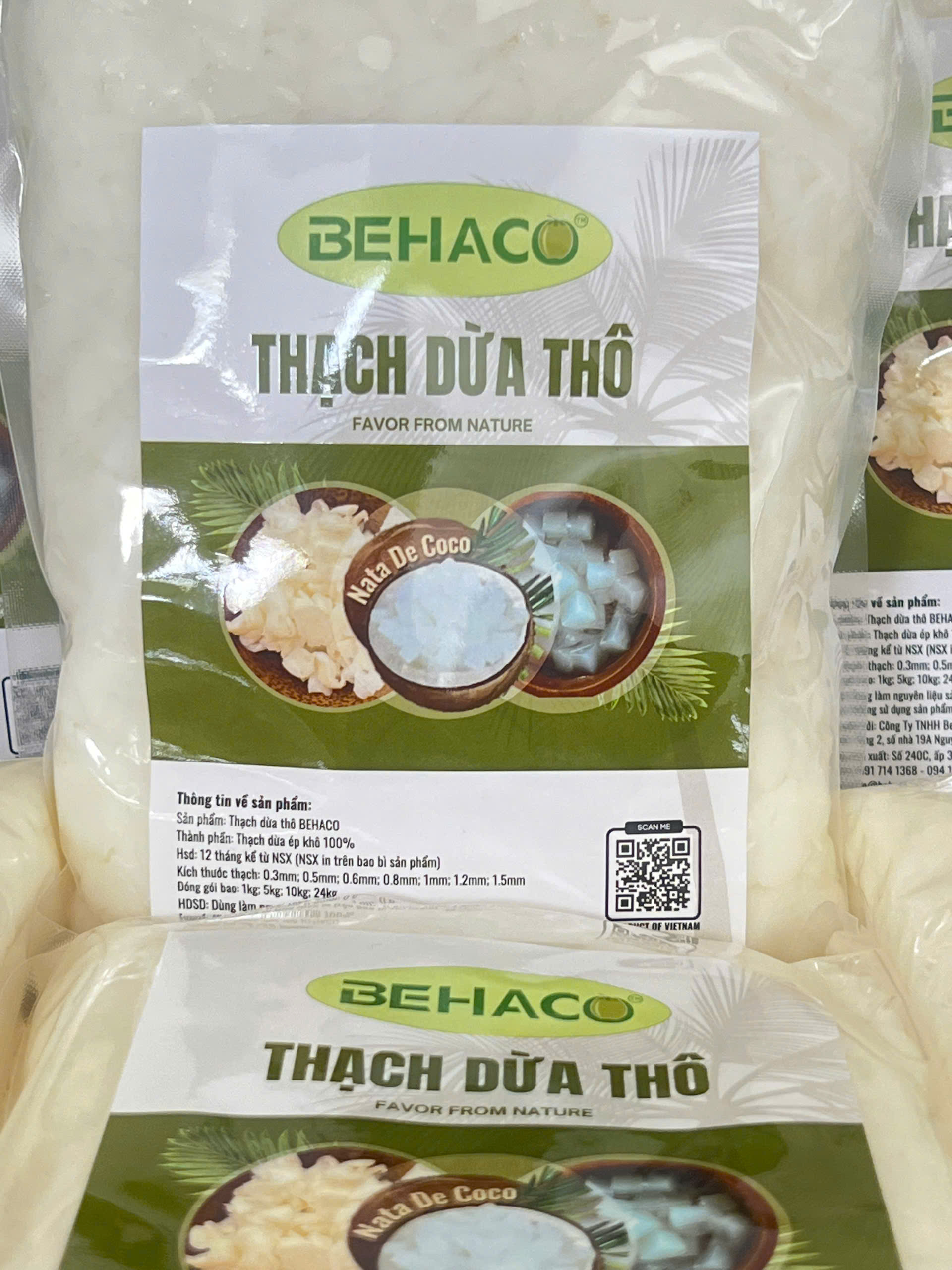 Mua tại TiktokTHẠCH DỪA ÉP KHÔ BEHACO - 15 LY Thạch dừa thô là lớp Hemicellulose, sản phẩm sinh khối đươc tạo thành bởi sự lên men của vi khuẩn Acetobacter xylinum trong môi trường nước dừa già bổ sung các chất dinh dưỡng cần thiết tốt cho sức khỏe. Thạch dừa thô được sản xuất tại Công Ty TNHH Behaco Bến Tre Việt Nam.