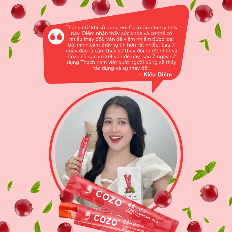 - Cơ thể nóng lạnh thất thường, hay bị rùng mình Thạch ăn COZO Cranberry Elderberry Jelly: • Ít đường • Thích hợp cho người ăn chay • Không có chất bảo quản hoặc chất tạo màu nhân tạo • Giàu Vitamin tổng hợp & Khoáng chất • Làm từ Thạch Konjac Jelly ít calo Thành phần :