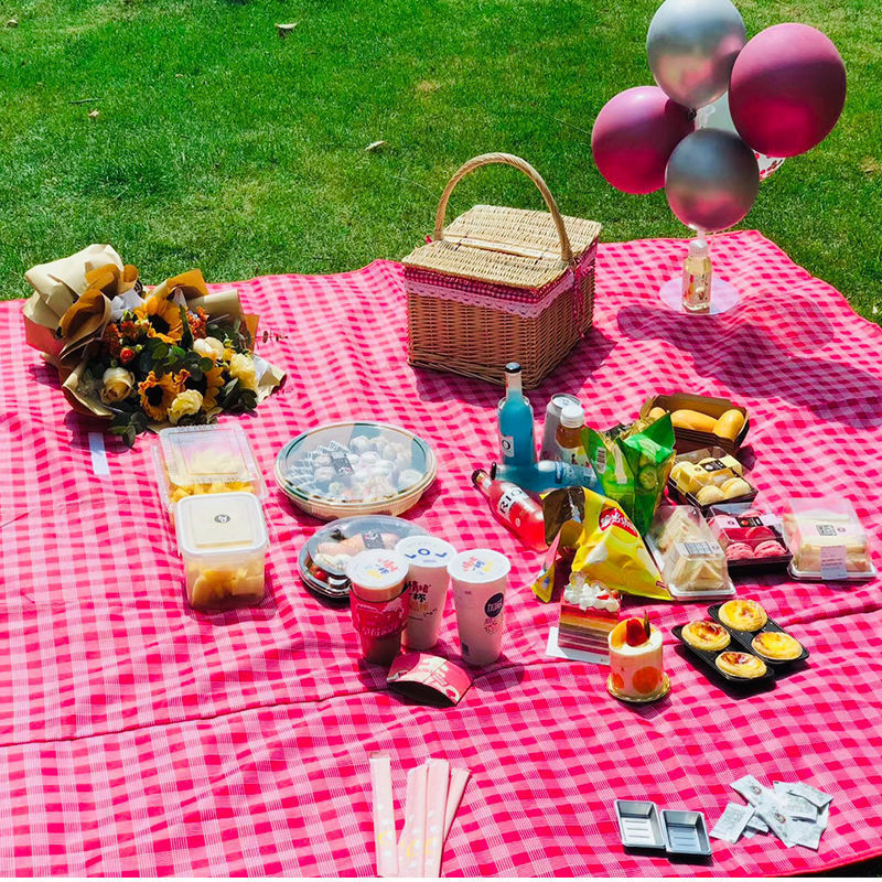 -Tấm thảm du lịch dã ngoại gấp gọn , bạt cắm trại cao cấp chống nước ,họa tiết caro màu sắc tươi mới , trang trí nhã nhặn xinh xắn có thể trải làm thảm