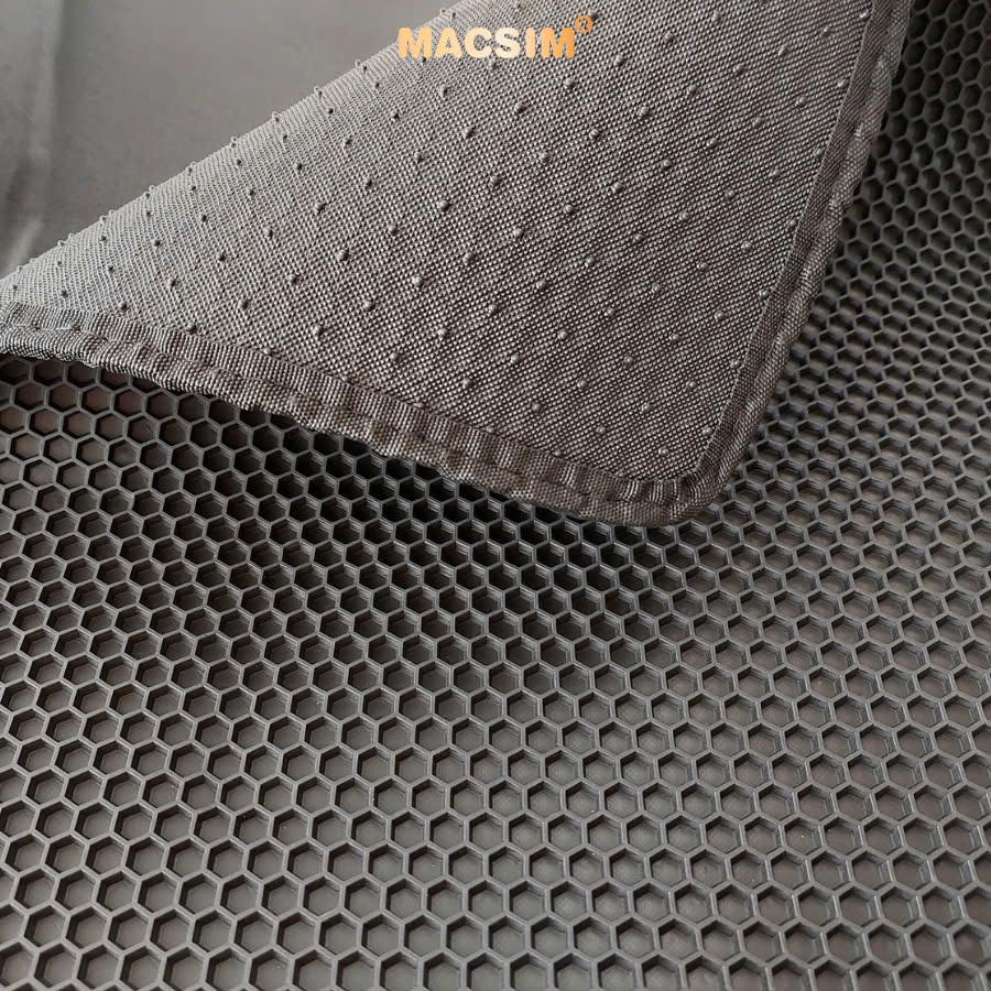 -Lớp 2 – Thảm dạng lưới lục giác màu đen giấu bụi bằng cao su PBR (Polybutadiene Rubber): Chất liệu cao su PBR dẻo dai, độ đàn hồi cao, chống mài mòn cực tốt, không mùi, thân thiện với môi trường và sức khỏe. Thiết kế tổ ong 3D thông minh giúp giấu bụi, giữ lại rác và đất cát mà không bị lộ ra ngoài. Khả năng bám sàn tốt, giúp thảm không bị xô lệch khi sử dụng. Có thể tháo rời dễ dàng để vệ sinh riêng, giữ cho lớp dưới luôn sạch sẽ.