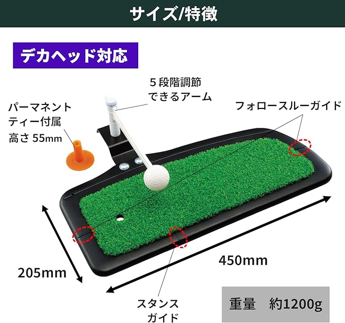 Tấm thảm có thể xử lý từ cách tiếp cận đến toàn bộ cú đánh Miếng bọt biển cao su gắn dưới đáy làm mềm tác động tại thời điểm đánh. Thống số kỹ thuật: