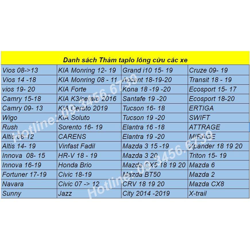 SẢN PHẨM TAPLO LÔNG CỪU CÓ CHO HẦU HẾT CÁC DÒNG XE , ĐỂ ĐẶT HÀNG VUI LÒNG CHAT TRƯỚC VỚI SHOP VỀ DÒNG XE VÀ ĐỜI XE. SHOP SẼ GIAO ĐÚNG MẪU CHO BẠN