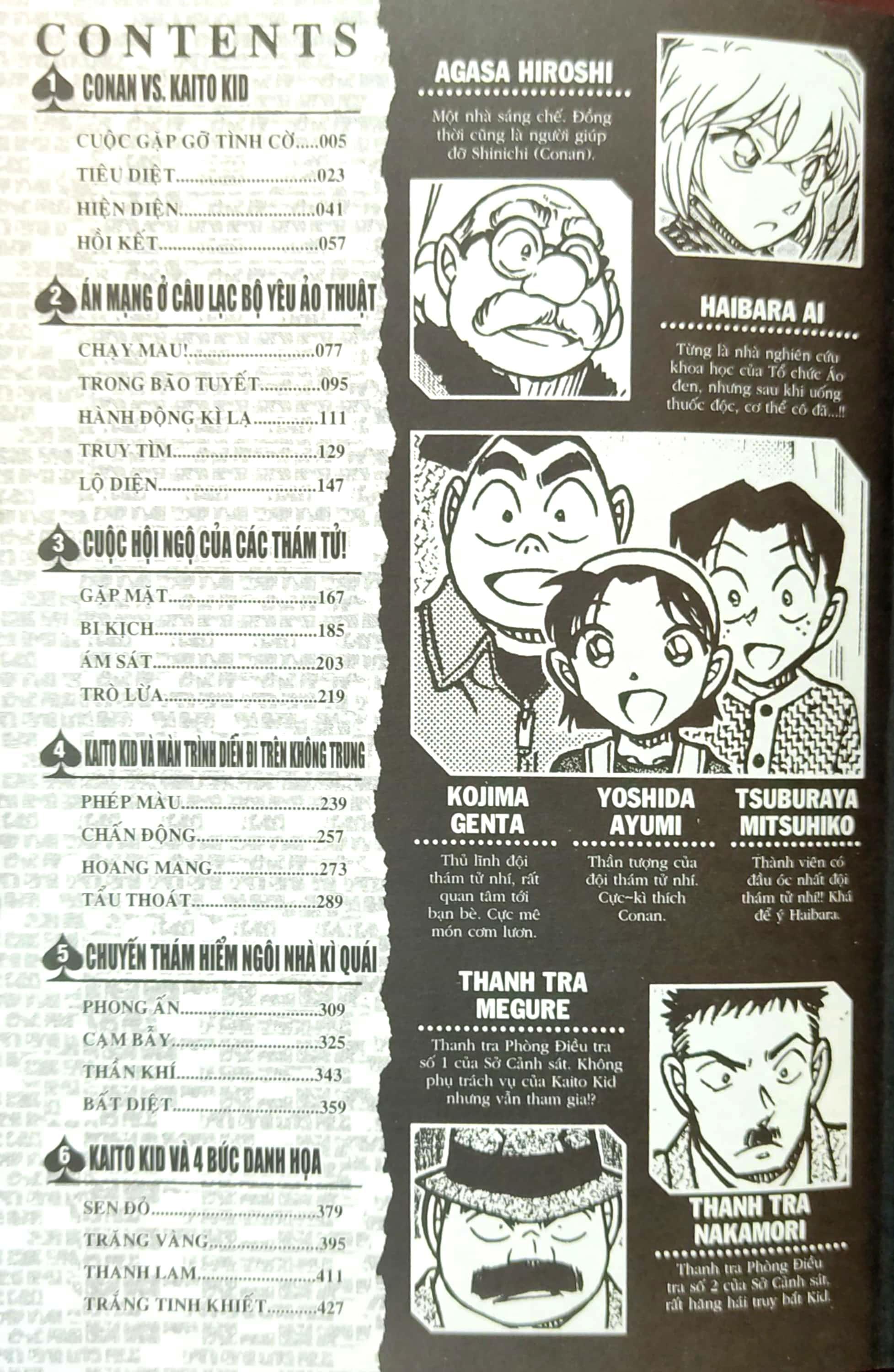 Các câu chuyện được tuyển chọn và biên soạn từ 6 phần: “Conan VS. Kaito Kid”, “Án mạng ở câu lạc bộ yêu ảo thuật”,“Cuộc hội ngộ của các thám tử!”,“Kaito Kid và màn trình diễn đi trên không trung”,“Chuyến thám hiểm ngôi nhà kì quái”, “Kaito Kid và 4 bức danh họa”!!