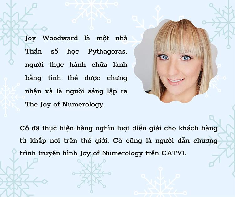 Joy Woodward là một nhà Thần số học Pythagoras, người thực hành chữa lành bằng tinh thể được chứng nhận và là người sáng lập ra The Joy of Numerology. Cô đã thực hiện hàng nghìn lượt diễn giải cho khách hàng từ khắp nơi trên thế giới. Cô cũng là người dẫn chương trình truyền hình Joy of Numerology trên CATV1.