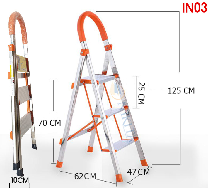 Điểm nổi bật của Thang ghế inox DIY - Rất tiện lợi cho việc thắp hương hoặc lấy đồ trên kho, khoan thay bóng đèn. - Duỗi chân hết cỡ để thang ổn định và