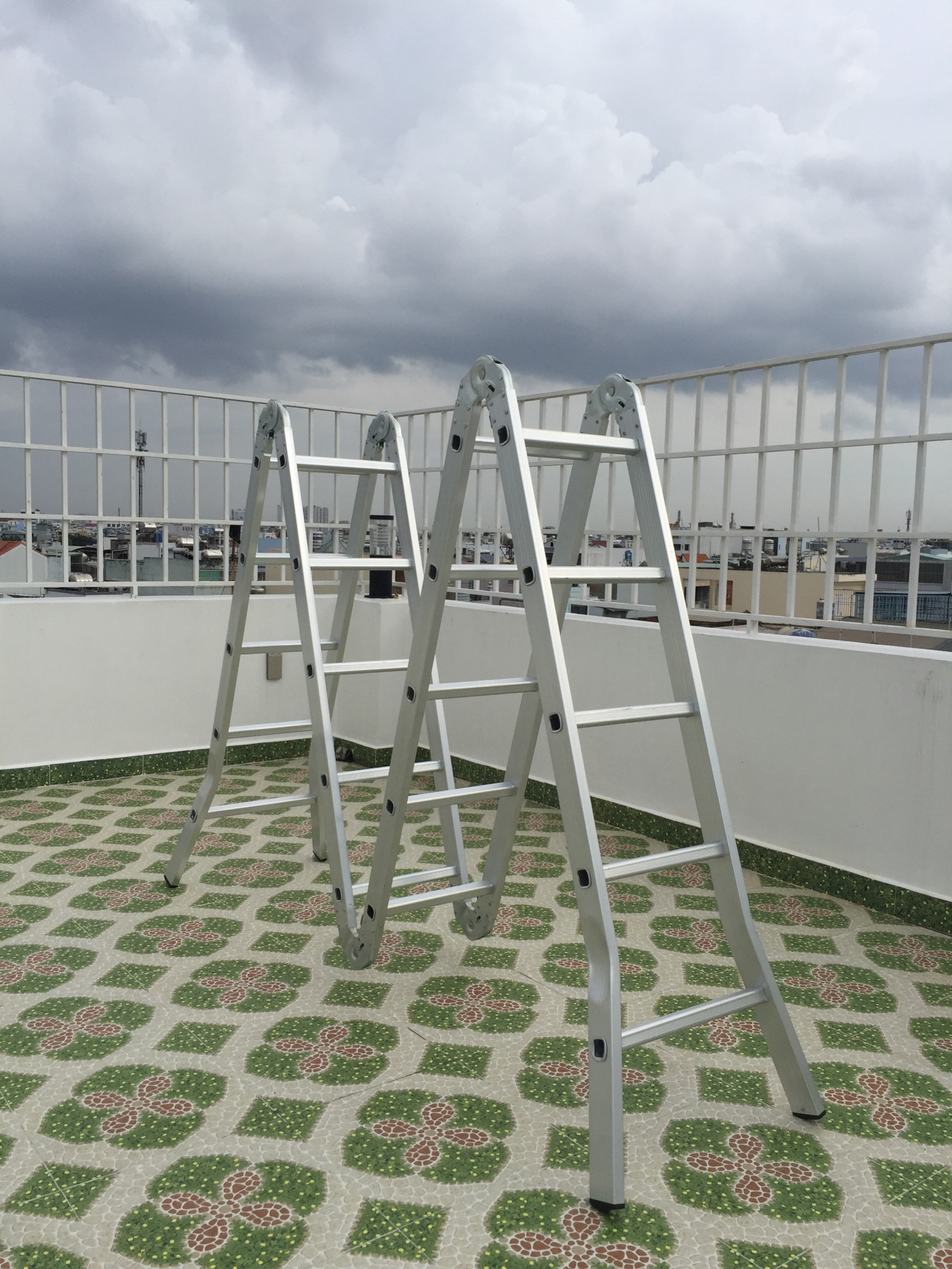 Điều đặc biệt của chiếc thang nhôm loại này chính là tính đa năng. Thang có thể biến tấu dưới nhiều hình dạng khác nhau. Trong đó, chiều cao tối đa có thể dùng lên tới 5.8m. Ngoài ra, bạn cũng có thể lắp ráp thang với nhiều hình dạng, phù hợp với từng không gian và nhu cầu công việc. Chiếc thang này cũng có thể thu gọn chỉ với một vài thao tác nhỏ giúp việc bảo quản tiết kiệm tối đa diện tích.