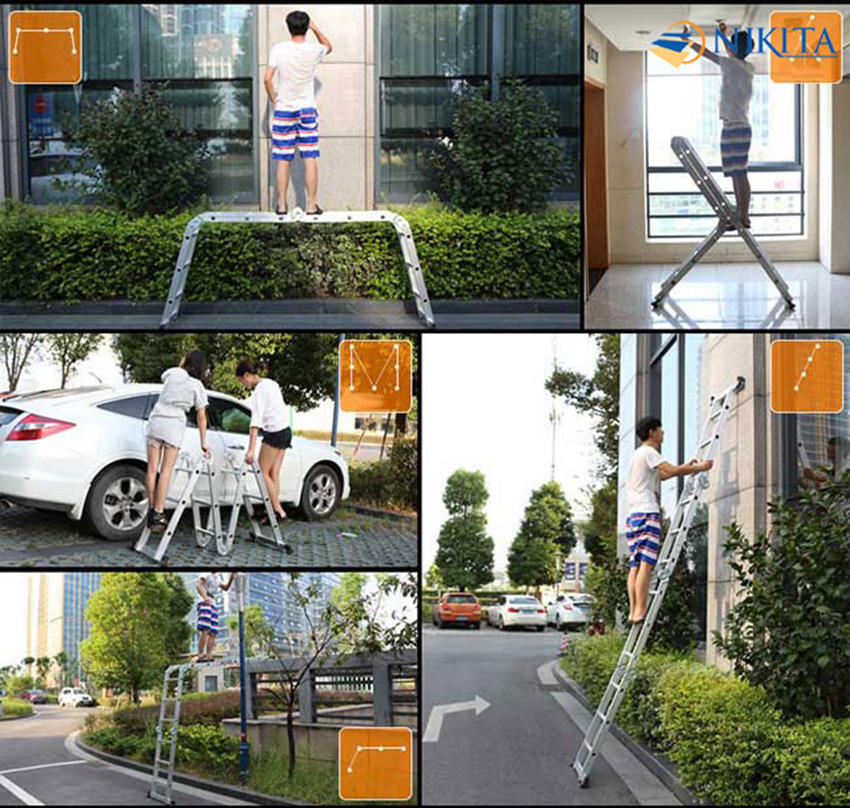Thang nhôm gấp bốn khúc, Khóa thang tự động, an toàn, tiện dụng, đa năng - Chính hãng NIKITA 2024