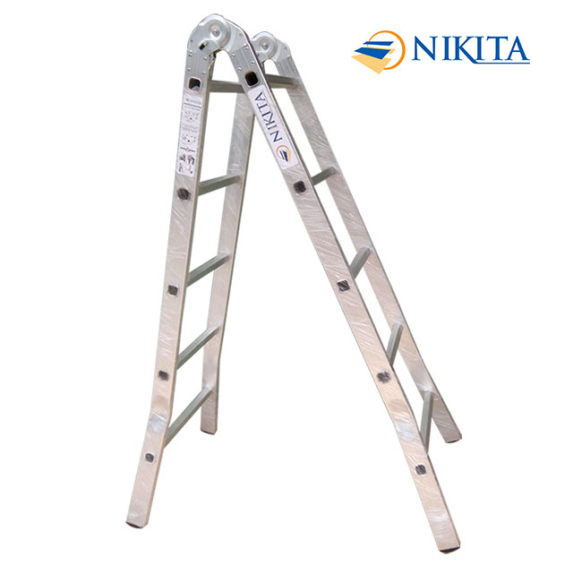 Thang nhôm Nikita NKT- NIKA20 Số lượng bậc: 6 bậc mỗi bên Chiều cao duỗi thẳng chữ I: 4 m Chiều cao chữ A : 1.9 m Trọng lượng: 7.2kg Công nghệ dập