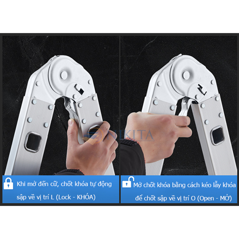 THANG NHÔM KHÓA SẬP TỰ ĐỘNG NIKITA NHIỀU KÍCH THƯỚC LỰA CHỌN ĐẶC ĐIỂM THANG KHÓA SẬP CHỮ A - NIKITA ỨNG DỤNG ĐA DẠNG