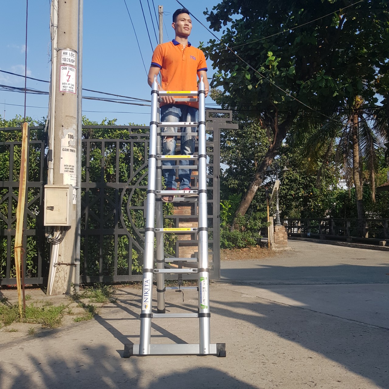 Thang nhôm rút NIKITA: có thể được điều chỉnh chiều cao một cách linh hoạt, phù hợp với nhiều nhu cầu sử dụng khác nhau. Chiều cao thang có thể lên tới 6m, đáp ứng được các công việc đòi hỏi độ cao lớn.