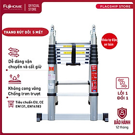 ✨Thang nhôm rút gọn chữ A FUJIHOME TLA08 ( Chiều cao chữ A 2,5m - Cao chữ I 5m, Khóa an toàn, đế chống trượt) Hàng Chính hãng