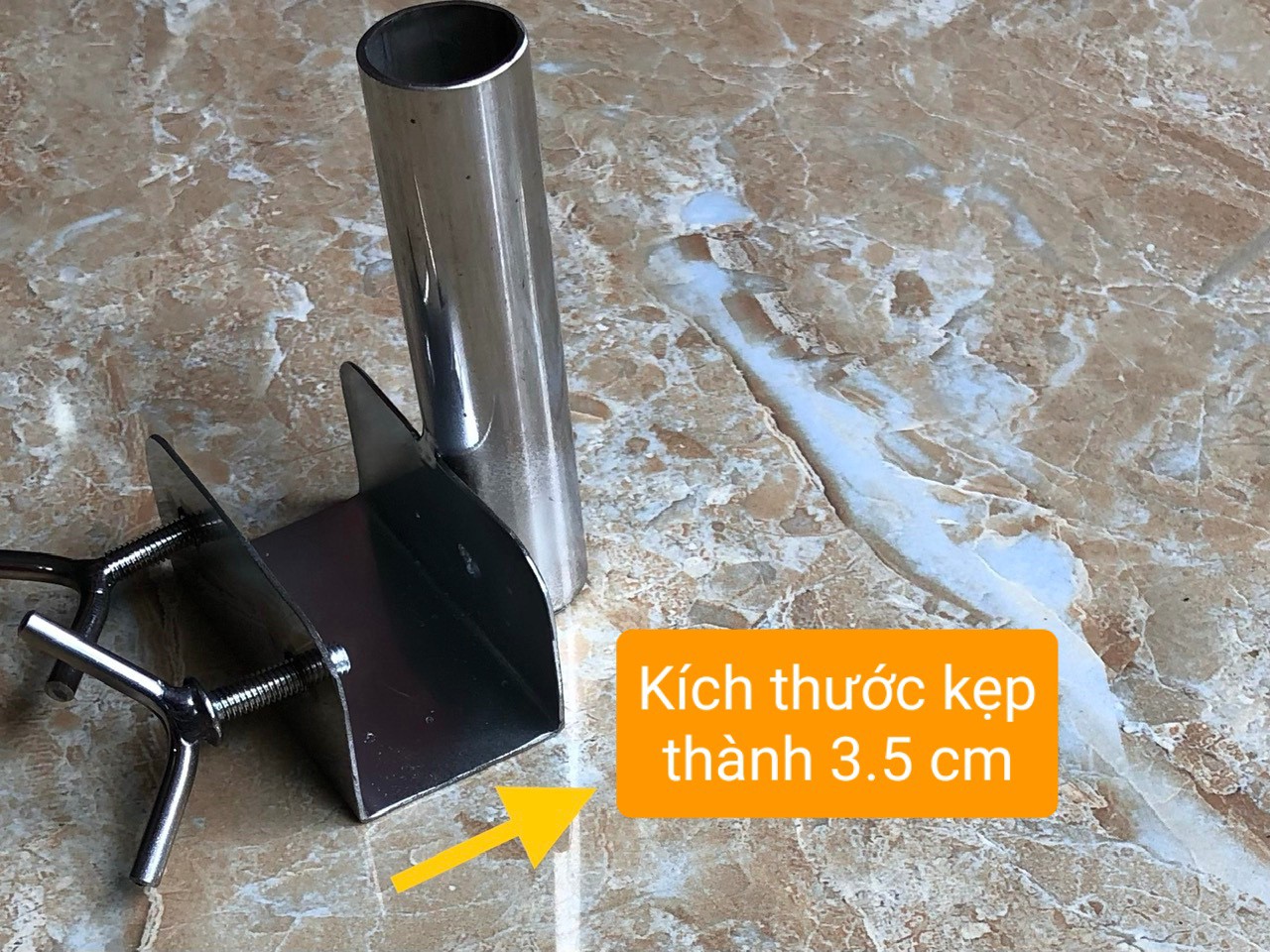sào giữa là sp được SD kẹp để cố định vào thành dường bằng bulong ( kẹp thích hợp với thành dường có độ dày 1,5 - 3,5 cm )