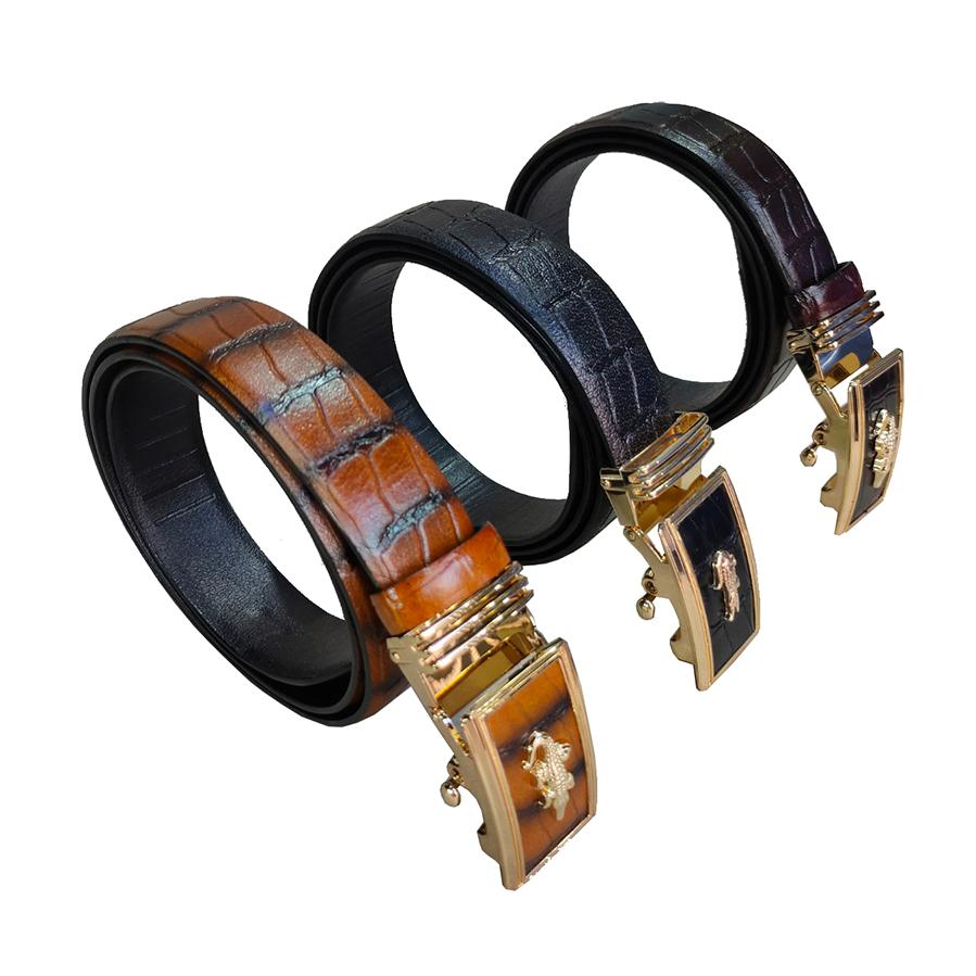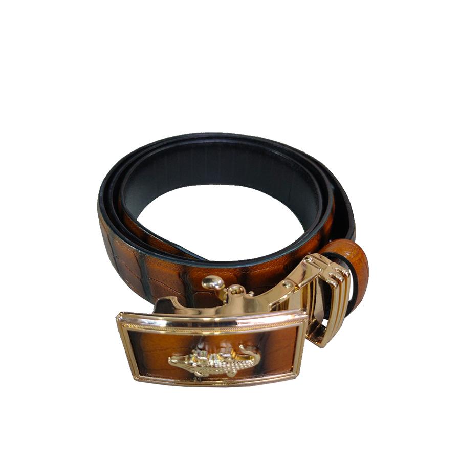 Thắt lưng nam khoá tự động INOX rất bền không sét rỉ dây da bò 100% in vân cá sấu -VIDEO 3008