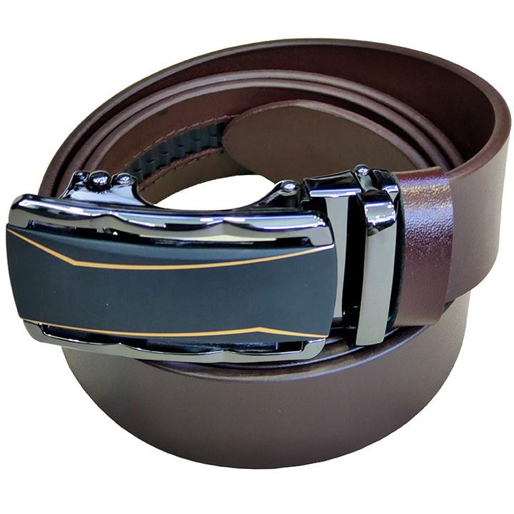 Thắt lưng nam da thật mặt khóa tự động bằng thép sáng bóng không gỉ