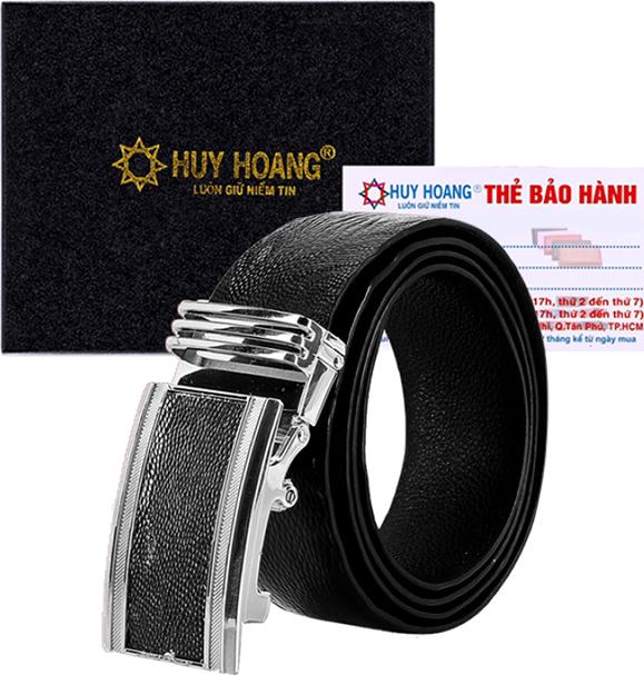 Dây nịt/Thắt lưng nam da bò Huy Hoàng 1m4 đầu tăng 4P màu đen 4144